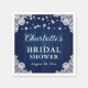 Os guardanapos de papel rústico azul-marinho elegantes com chá de panela apresentando um fundo de madeira rústica adornado com luzes de cordas e um lugar floral branco.