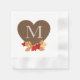 Chá de panela de queda elegante ou guardanapos de casamento. Apresenta uma letra de monograma num espantoso coração de folha de outono. Uma adição perfeita para o seu casamento outono ou chá de panela!