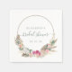 Este design boho apresenta as palavras "chá de panela" em uma elegante escrita verde de sábio com flores no início e no final, enquadrada por um aro decorado com um buquê aquoso tropical de flores cor rosa, escamosas e brancas, palmeiras secas e folhagem de eucalipto. Personalize o texto com o nome da futura noiva e a data do chá.