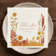 Adicione um toque sazonal chique ao seu chá de noiva com esses guardanapos de cocktail temáticos de outono. Compondo com flores de aquarela pintadas à mão em tons quentes de ferrugem, âmbar e amarelo dourado, eles enquadram o texto romântico “Enamoriscar-se” com o nome da noiva e a data abaixo. O fundo de creme macio cria um cenário elegante para o design inspirado no outono, tornando esses guardanapos perfeitos para bebidas, sobremesas ou arranjos de mesa. Um detalhe elegante que se integra perfeitamente à decoração do chá de noiva de outono, ideal para celebrações rústicas, boho ou campestres.