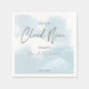 Guardanapos personalizados para chá de panela She is on cloud nine, Nuvens em aquarela pastel, letra moderna cinza.