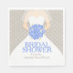 Vestido de noiva elegante com um buquê azul estilizado de rosa e chá de panela de chuva de cinza frágil guardanapos de papel descartáveis. Edite estes guardanapos com sua noiva honradora para ser o nome. Ideal para uso em uma festa de chá de panela e combina com o vestido de noiva azul de buquê. Design e arte gráfica únicas por Sarah Trett para www.mylittleedenweddings.com