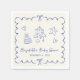 Os guardanapos de chá de bebês de creme claro, bonitos, com um quadro de onda azul francês adornado com arcos, ilustrações brancas desenhadas à mão de corações, estrelas, bolo e decoração de berçário, e o nome da futura mãe, mostrada num divertido e lúdico roteiro azul.