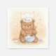 Este adorável guardanapo de papel personalizado apresenta um pequeno cozinheiro de ursinho mexendo com uma tigela de bateria com uma colher de madeira. Ele veste o chapéu de um chef branco com o nome do seu amado.