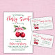 Celebrar o nascer "Cherry on top", em breve, com este design caprichoso e inspirador de Napkins em cores vermelha, verde e rosa e arco de fita para o Decor do Chá de fraldas Rapariga