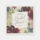 Essos guardanapos florais chiques adicionarão um toque de elegância ao seu chá de noiva. Este modelo de design moderno apresenta o nome da noiva com as palavras "Chá de Noiva" em letra manuscrita com a data abaixo para personalizar em um quadro bordeado por um padrão de rosas pintadas à mão em tons de vinho e vermelho marsala acentuadas por hidrangea azul e eucalipto sobre um fundo dourado falso. Desenhado pela artista Susan Coffey.
