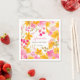 Guardanapos para festa de chá de panela floral cor-de-rosa e amarelo, com rosas pintadas à mão, girassóis amarelos e outras lindas flores de jardim com uma fonte de pincel moderno.