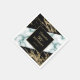 Um guardanapo de aniversário moderno, na moda e glamouroso. Estrutura de mármore de pintura de folha de ouro preto e brilhante com fundo de pedra mármore branca. Personalize e adicione os detalhes da sua festa. Faça do seu aniversário de marco um evento extraordinário!