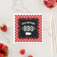 Os guardanapos de festa de aniversário assados de porco assado casual de quintal apresentam um quadro decorativo preto, fontes no estilo ocidental, sotaques estelares e um design de borda de xadrez de toalha de gingham vermelha. Personalize o número de idade.