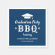 Os guardanapos de festa de formatura com estilo casual e rústico no quintal/churrasco apresentam fontes ocidentais e modernas, formando o sotaque do boné e uma cor azul de fundo do marinho que pode ser modificada para outras cores escolares.