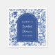 Este guardanapo para chá de noiva é lindo e elegante, apresentando um padrão de Chinoiserie azul antigo. O texto combina fontes manuscritas e serifadas para um visual moderno e sofisticado. É perfeito para um chá de noiva de jardim na primavera ou verão.