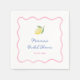 Este design moderno de guardanapo apresenta uma borda ondulada desenhada à mão e na moda, com um limão pintado à mão em aquarela contra um fundo branco para um sentimento fresco e estival adorável. Mostrado aqui para uma Chuva de Noiva, mas é claro que o texto pode ser personalizado para qualquer evento.