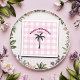 Faça uma Chuva de Noiva inesquecível com este design xadrez branco e rosa que ilustra uma palmeira legal.