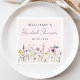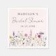 Guardanapos de chuva de noiva florais elegantes com uma borda inferior de flores silvestres em aquarela e folhagens em tons de rosa, amarelo, roxo, azul e verde em um fundo rosa claro. Personalize os guardanapos de chuva de noiva com flores silvestres com o nome da noiva e a data. Os guardanapos de flores silvestres personalizados são perfeitos para chuvas de noiva de primavera e verão.