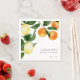 Um guardanapo temático de chuva de noiva com frutas cítricas e folhagem em aquarela que pode ser personalizado com a inclusão do seu nome e data da chuva de noiva. O design pode ser usado no verão ou no final do outono. O design é elegante e minimalista.
