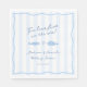 Design de guardanapo de chuva de noiva ou chuva de noiva conjunta "Dois Menos Peixes No Mar" desenhado à mão e moderno, apresentando elementos originais. Mostrado aqui em azul e branco, observe que TODAS as cores de todos os elementos podem ser personalizadas (listras, fundo, peixes, coração e borda). Todas as obras de arte nesta coleção de convites são de minha autoria original (desenhadas à mão e / ou pintadas à mão).