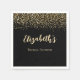 Um guardanapo de Chuveiro de Noiva com brilho impressão leopardo dourado preto. Personalize-os com duas linhas de texto.