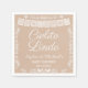 Elegant Beige baby shower napkins featuring a delicate white papel picado banner and ornamental floral border. Personalized with names and event date, these napkins are perfect for a Cielito Lindo or Mexican-inspired baby shower theme.
