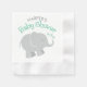 Na moda e doce guardanapo de chá de fraldas personalizado apresentam um adorável bezerro de elefante recém-nascido com salpicos em forma de coração e um fundo padronizado com bolinhas. Inclui um esquema moderno de cor neutra do ponto de vista do gênero, o verde da menta e as cinzas. Personalize o texto personalizado com o nome da futura mãe.