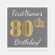 Este simples design de guardanapo de papel apresenta uma mensagem como "Aniversário do 80 do Primeiro Nome!", com o "80" a ter uma aparência falsa/imitada de ouro, sobre um fundo de cinza (cinza) colorido. O nome pode ser personalizado. Pode ser usado numa festa de aniversário para alguém que comemora seu oitavo aniversário. [~Z0000190]
