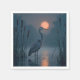 Uma erva-cinza fica graciosamente em água rasa cercada por altas sementes enquanto a lua rosa lança um brilho quente através da cena
