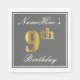 Este simples e elegante design de guardanapo de papel apresenta uma mensagem como "NameHere's 9th Birthday" (com o "9º" com uma coloração falsa em ouro) dentro de uma área quadrada colorida de cinza com um contorno simples de fronteira. O nome está em um texto semelhante a script de cor branca e pode ser personalizado. Napkins como estes poderia talvez ser usado numa festa de aniversário para alguém que comemora seu nono aniversário. [~Z0000191]