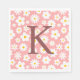 Design floral moderno, de cor branca, com margaridas brancas planas dispersas por centros de ouro de girassol sobre um fundo cor-de-rosa macio. Design personalizado com um grande monograma. Entre em contato para obter assistência para personalizar ou personalizar.