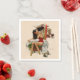 Pacote de 50 guardanapos de coquetéis de papel branco com uma imagem antiga do artista Joe De Mers publicada numa edição de 1948 da revista Esquire. Nesta imagem, uma jovem artista feminina está sentada sobre um porta-malas em uma barraca e consertando seu cabelo enquanto olha em um espelho compacto. Um gato siamês com uma coleira vermelha está no chão ao lado dela. Atrás dela há um carro de circo e um pônei com uma pena vermelha na cabeça e um arco vermelho na cauda. Consulte guardanapo de pano, porta copos de plástico e porta copos de papel correspondentes. Veja toda a coleção Patriótica Napkin dos anos 40 na COMIDA/BEV | Seção Linens.