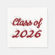 Graduation paper napkin with Class of 2026 in 3D burgundy text. Available in several styles and sizes.