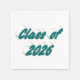 Graduation paper napkin with Class of 2026 in 3D green text. Available in several styles and sizes.