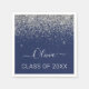 Classe de Graduação de Prata do Partido 2024 e Folha Marinho Azul Folha Folha Metálica Brilhante Monograma de Metais Brutos de Monograma de Nome Segundo grau ou de Papelão de Formando Colégio de Napkins.