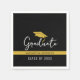 Adicione um toque de na moda à sua comemoração da graduação com estes guardanapos de papel personalizados, preto e ouro, modernos, com um roteiro elegante de "Formando", um gráfico de boné de formatura elegante e texto personalizável para o nome e o ano de aula do formando. Perfeito para festas de segundos graus ou formandos, esses sofisticados guardanapos melhoram sua decoração de mesas e oferecem conveniência aos convidados.