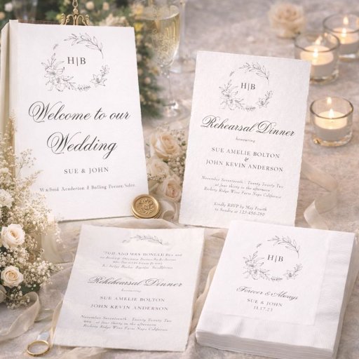 Guardanapo De Papel Classic Floral Wreath Monogram Wedding