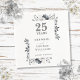 Com um design floral prateado em aquarela elegante, este design botânico sofisticado para aniversário de casamento de 25 anos pode ser personalizado com as informações do seu aniversário especial em texto prateado moderno. Criado por Thisisnotme©