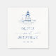 These elegant New England coastal blue wedding napkins feature a hand drawn toile-style lighthouse and delicate calligraphy script uniting the names of the bride and groom.