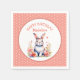 Um coelho doce rodeado por flores cor-de-rosa e coral ilustra aquarela guardanapos de papel festa de aniversário personalizados para uma garotinha.