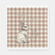 Coelho coelho bonito desenhado com a mão e flores estilizadas sobre um creme neutro quente e tradicional e padrão de xadrez Mocha Mousse gingham. Este design é totalmente editável para que você possa personalizar os textos das mensagens do Felz pascoa.