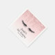 guardanapos de papel de festa de aniversário com um design moderno, moderno, moderno e brilhante (faux). Para aqueles que desejam transmitir um ar de classe e elegância. Projetado com um fundo que tem uma imagem de brilho brilhante, cor-de-rosa, gotejando (faux) ao longo do topo. O resto do fundo é um delicado gradiente cor-de-rosa pastel. Uma ilustração de um par de pestanas pretas completa o design.