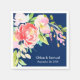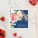 Um brilhante e colorido buquê floral e cattail está no canto superior esquerdo destes bonito guardanapos de papel de casamento. As cores no buquê incluem o cor-de-coral rosa, o rosa violeta claro, o branco, o amarelo pálido e o ouro, e o verde, com um toque de azul-aqua. Ele apresenta seu texto personalizado em branco no centro. A imagem é colocada sobre um fundo azul marinho dramático. Seu texto personalizado está em branco no fundo. Esses guardanapos bonito são versáteis o suficiente para serem usados em diversos eventos, especialmente no primavera e verão, ou em qualquer evento com tema tropical. Há convites de casamento e outros produtos de casamento na nossa loja.