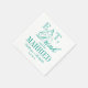 Coma bebida e case-se com os guardanapos de casamentos de aqua/azul-turquesa e papel branco. Design de tipografia de script elegante para festa de casamento de classe. Caligrafia manuscrita na moda combinada com fontes formais quic. Modelo de tendências com cores de fundo personalizáveis. Um slogan bonito para a mesa de janto chic rustic country. Excelente para jantadas de ensaio. Personalizado com o nome da noiva e do noivo e a data do casamento. Belo decoro formal de casamento.