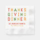 Os guardanapos de papel jante de Ação de Graças moderno apresentam letras no estilo das penas em cores vibrantes do outono: vermelho, laranja de abóbora, verde e ouro. Personalize o texto personalizado 'Coma, Beba e Seja grato' com seu nome de família.