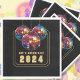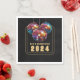 Celebrar vamos! guardanapo de papel preto 2024. O texto está em uma fonte de ouro. Se você quiser outro texto, ele pode ser personalizado e facilmente alterado. Decorar e fazer uma mesa coesa para uma festa lembrar com guardanapos de papel correspondentes às placas. Dance seu caminho para o ano novo com bons amigos.