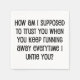 Para o amante sarcasmo em todos nós. Confira esta testemunha "Como eu sou suposto confiar em você se você continuar fugindo toda vez que eu te desamarro?" design no roupa e presentes.