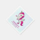 Guardanapos de festa personalizados (ou outro evento). Projetado com um unicórnio alado branco com mané rosa, cauda e cascos. A buzina tem anéis de cor arco-íris e parece um pirulito doce. Este unicórnio fofo está se erguendo nas pernas traseiras. Doce cor-de-rosa na bochecha e longos cílios femininos.