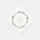 Coroa de aquarela rústica de folhagem da floresta, guardanapos de papel personalizados. A coroa apresenta tons suaves de verde, marrom e azuis esbranquiçados.