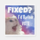 O que quer dizer que vai me consertar para que eu não precise votar mais? De jeito nenhum. Você está pedindo para ficar arranhado... e muito. Eu não quero ser consertado. Quero votar, e é exatamente isso que vou fazer. Votem todos aqueles que queiram violar eleições livres e justas e votar em candidatos que apoiem a democracia e protejam a minha liberdade.