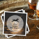 Os guardanapos de coquetel de Derby contêm um decantador cheio de uísque e óculos numa mesa de madeira rústica e uma silhueta de cavalo de corrida (você pode remover o cavalo) com os detalhes da sua festa em caracteres quicos. CORRESPONDENTE a itens na nossa coleção.