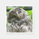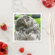 Uma coruja bonitinha com cabeça num lado e um olho aberto e o outro fechado. Um design fotográfico.