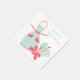 Um guardanapo de papel chá de panela da cozinha divertido com avental bolinhas azul e branco e utensílios de cozinha amarrados com um arco rosa. Graphics ©http://myclipartstore.com
