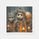 Guardanapos de papel do Halloween com crianças estranhas e assustadoras. Parece uma boneca de porcelana com rachaduras, cicatrizes e olhos assustadores, há uma besta esquelética e um menino estranho que também se parece com uma boneca de porcelana assustadora, com picos, cicatrizes, e olhos abarrotados. Estão em fantasia, ou seres de um castelo de mau escuro? Conteúdo #generativo